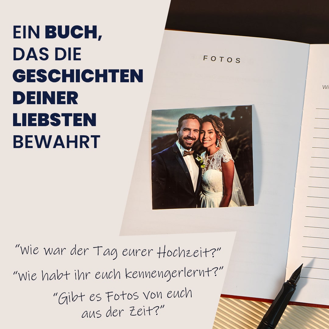 Deshalb ist das Buch so gestaltet, dass genügend Platz für Fotos vorhanden ist, um Erinnerungen noch lebendiger festzuhalten.