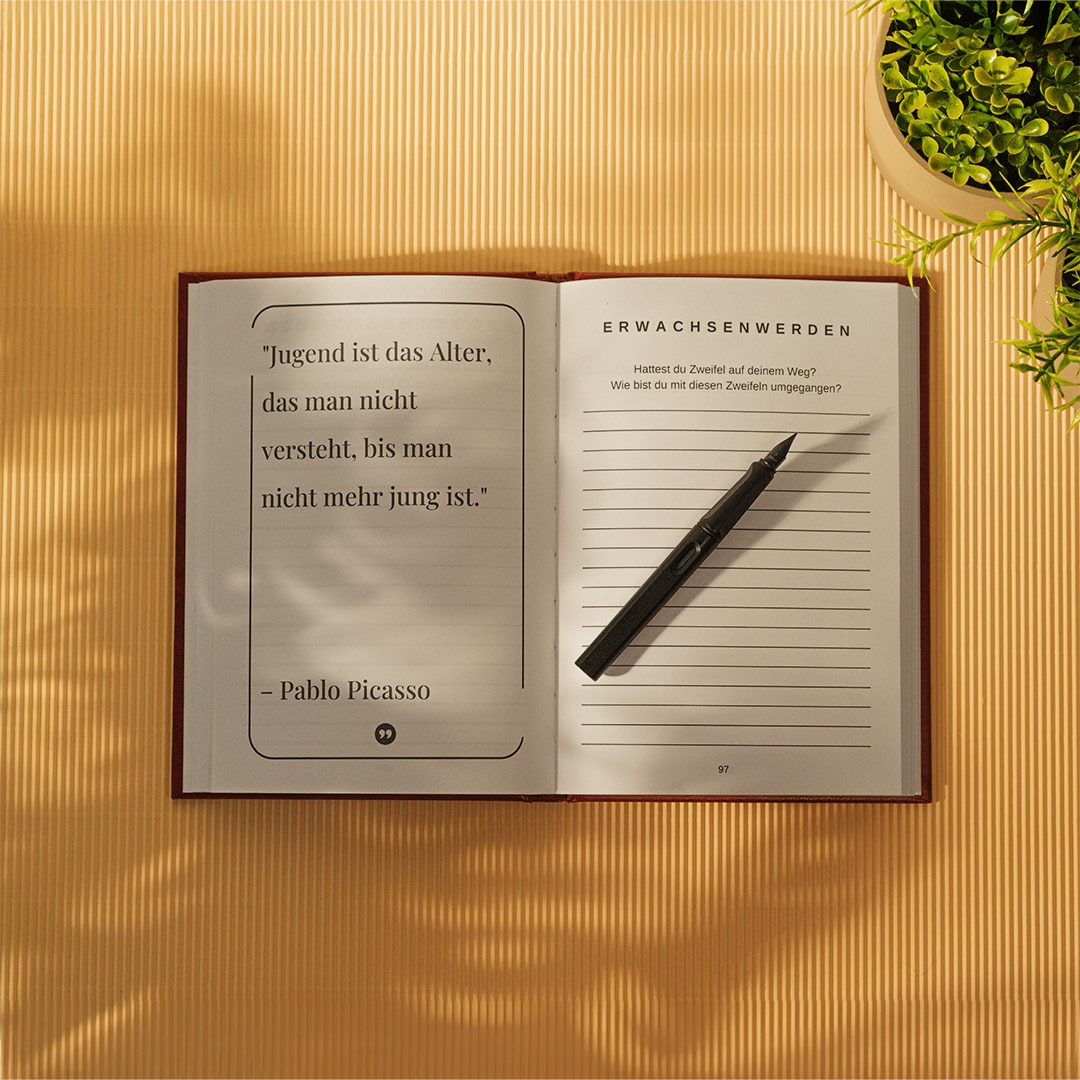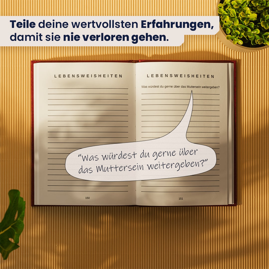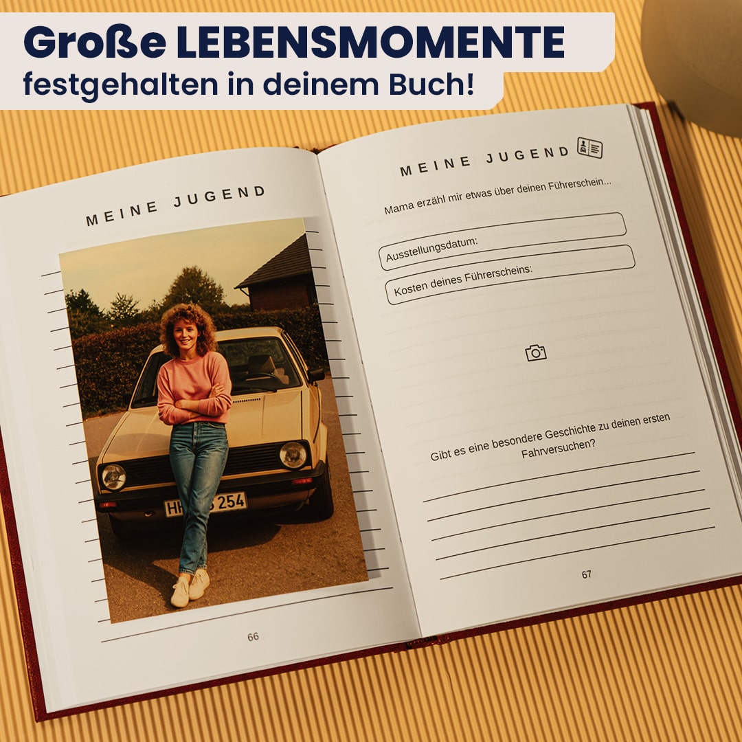 Die sorgfältig ausgewählten und geführten Fragen leiten dich Schritt für Schritt durch die Kapitel, sodass Erinnerungen und Geschichten mühelos festgehalten werden können.